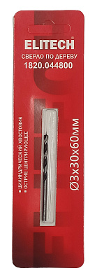 Сверло для дерева ELITECH 1820.044800 O3x30x60мм.