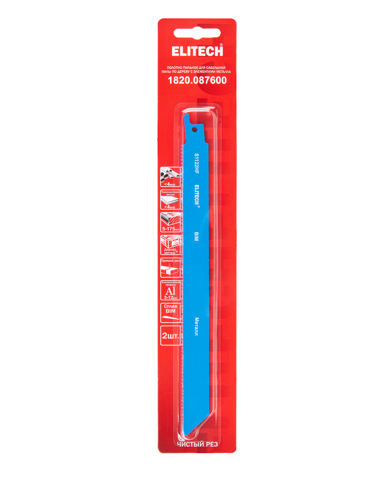 Полотно пильное для сабельной пилы ELITECH 1820.087600. Зубья позволяют выполнять чистый пропил.