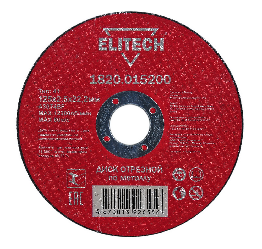 Диск отрезной по металлу прямой ELITECH 1820.015200, O125х2,5х22мм предназначен для обработки изделий из металла (прутков, арматуры, уголков и других профилей). Обладает очень высокой производительностью резания при большом сроке службы.
