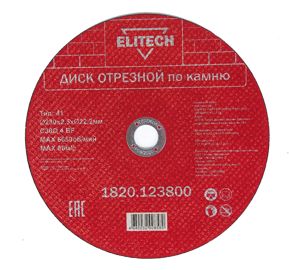 Диск отрезной по камню ELITECH 1820.123800 198556