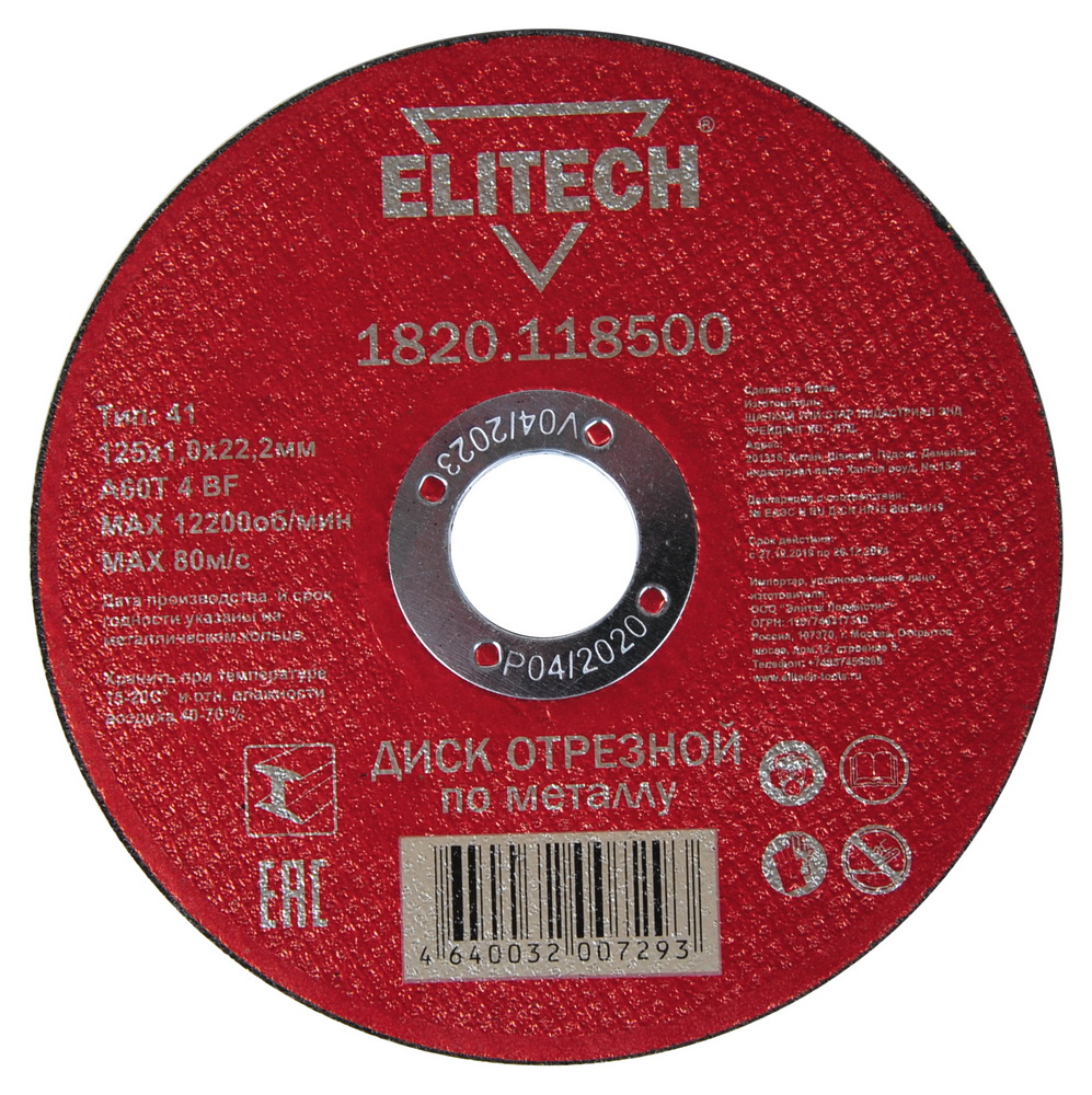 Диск отрезной по металлу прямой ELITECH 1820.118500, O125х1,0х22мм предназначен для обработки изделий из металла (прутков, арматуры, уголков и других профилей). Обладает очень высокой производительностью резания при большом сроке службы.
