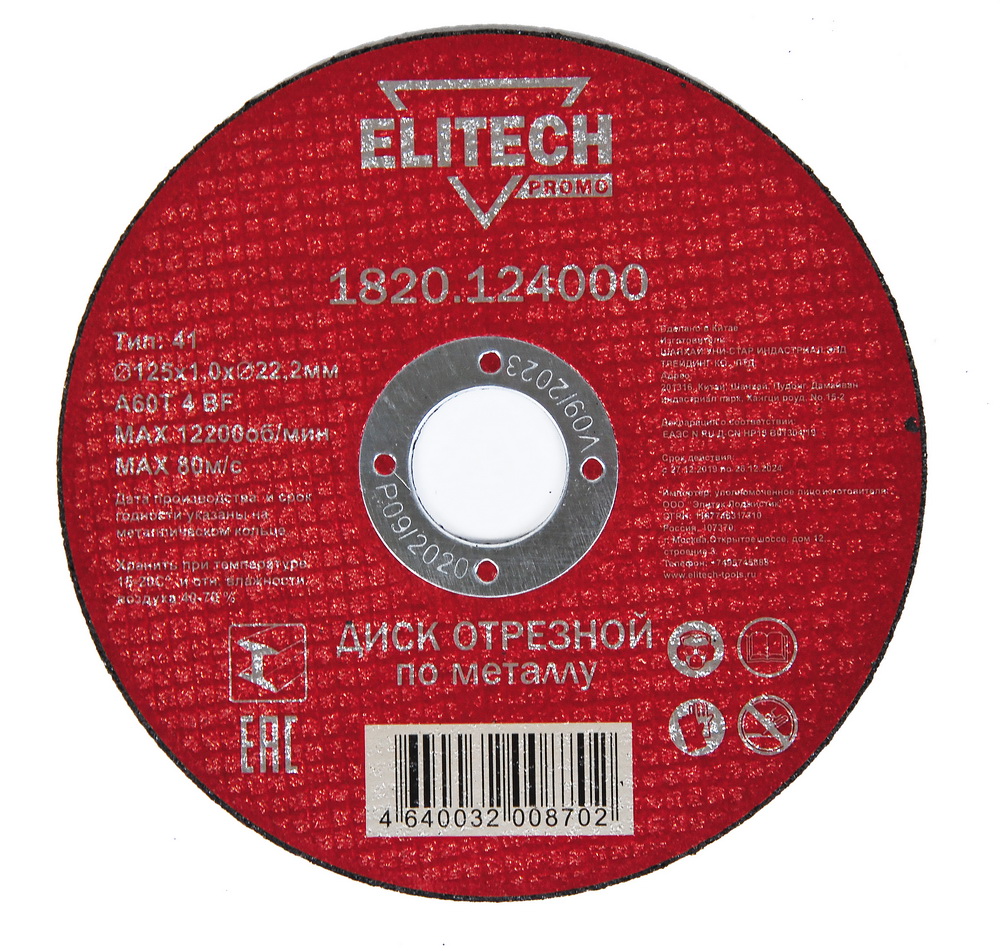 Диск отрезной прямой,ф125х1,0х22,2мм,д\металла, отгрузка кратно упаковке 10шт. (Elitech ПРОМО)
