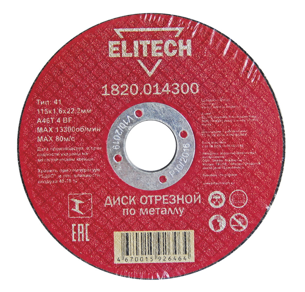 Диск отрезной по металлу прямой ELITECH 1820.014300, O115х1,6х22мм предназначен для обработки изделий из металла (прутков, арматуры, уголков и других профилей). Обладает очень высокой производительностью резания при большом сроке службы.