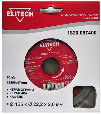 Алмазный диск со сплошной кромкой ELITECH 1820.057400 используется для резки плитки. Применение диска со сплошной кромкой минимизирует риск появления сколов на линии реза и позволяет добиться максимально возможного качества распила. Сплошная кромка легко перегревается и поэтому должна при работе охлаждаться водой.