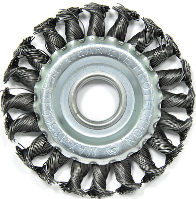 Щетка ELITECH 1820.073300 для угловых шлифовальных машин из плоской крученой проволоки, диаметр 100 мм.