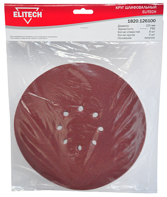 Круг шлифовальный ELITECH 1820.126100 для шлифмашины ELITECH МШС 1923Э ( E2213.003.01) на липучке, 8 отверстий. В комплекте 5 штук.