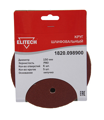 Круг шлифовальный ELITECH 1820.098900 - предназначен для использования совместно с эксцентриковыми шлифовальными машинами; перфорация для отвода продуктов шлифования. Подходит для любых шлифмашин с аналогичным типоразмером круга.
