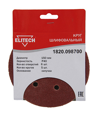 Круг шлифовальный ELITECH 1820.098700 - предназначен для использования совместно с эксцентриковыми шлифовальными машинами; перфорация для отвода продуктов шлифования. Подходит для любых шлифмашин с аналогичным типоразмером круга.