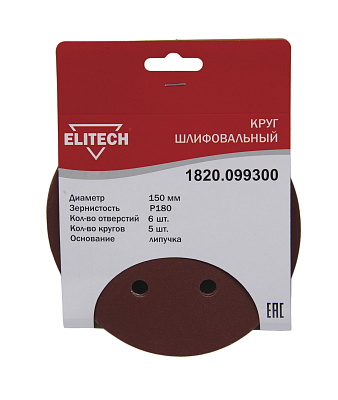 Круг шлифовальный ELITECH 1820.099300 - предназначен для использования совместно с эксцентриковыми шлифовальными машинами; перфорация для отвода продуктов шлифования. Подходит для любых шлифмашин с аналогичным типоразмером круга.