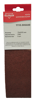 1110.006600 Шлифлента,75х533мм,P40,3шт Применяется для обработки металлических поверхностей, поверхностей из твердых и мягких пород д,ерева и других деревосодержащих материалов, а также для снятия лакокрасочных покрытий.