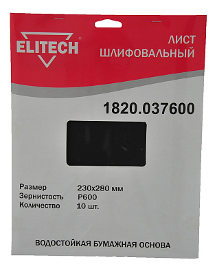 Лист шлифовальный ELITECH 1820.037600, 230х280мм, Р600,