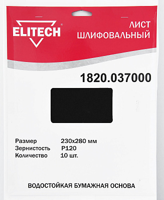 Лист шлифовальный ELITECH 1820.037000, 230х280мм, Р120.