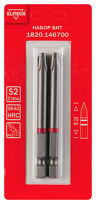 Набор 2шт, биты, PH3, 70мм, сталь S2, магнит, блистер