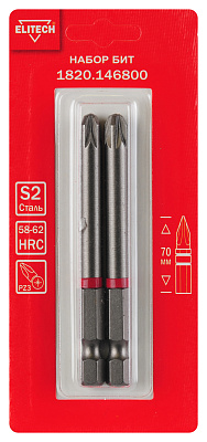 Набор 2шт, биты, PZ3, 70мм, сталь S2, магнит