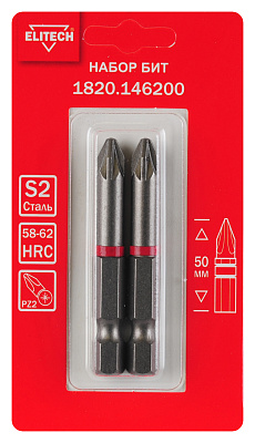 Набор 2шт, биты, PZ2, 50мм, сталь S2, магнит, блистер
