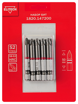 Набор 10шт, биты, PZ2, 50мм, сталь S2, магнит