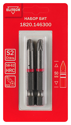 Набор 2шт, биты, PZ2, 50мм, сталь S2, магнит, блистер