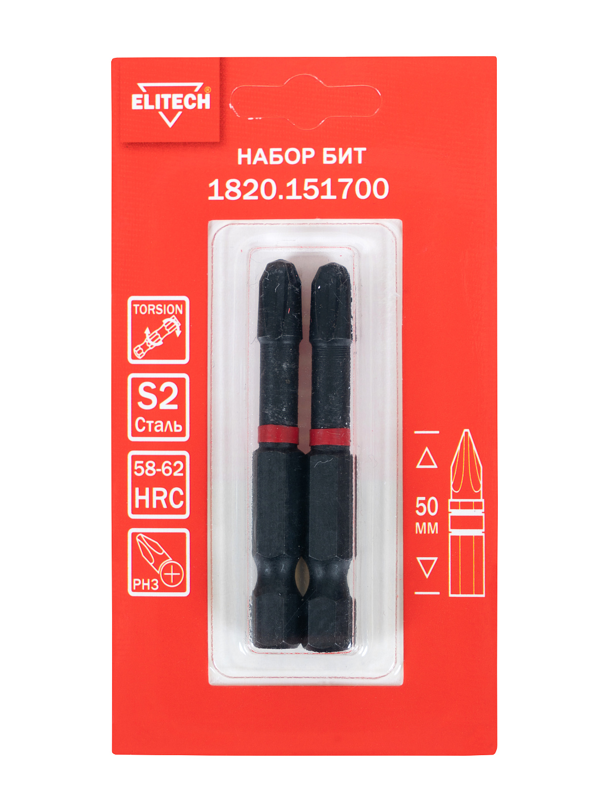 Биты ударные ELITECH 1820.151700. Предназначены для проведения монтажа и демонтажа резьбовых и саморезных соединений. Применяются при работе с ударными шуруповертами.