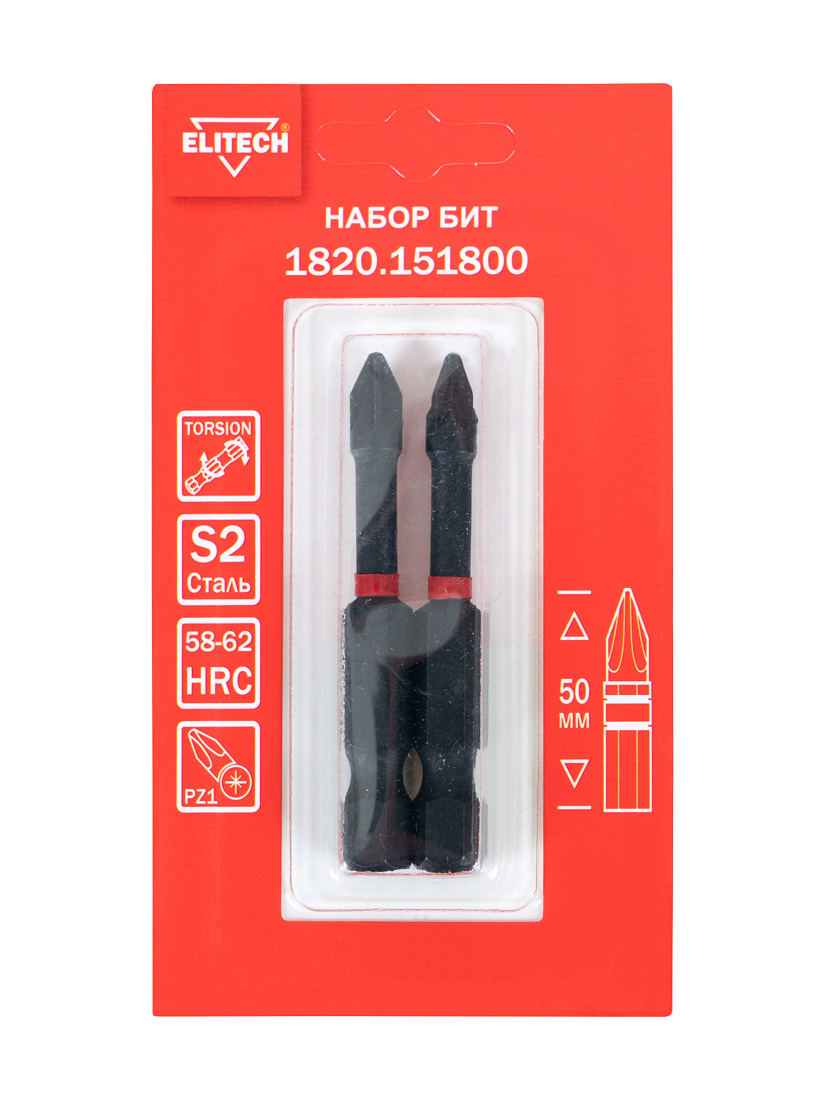 Биты ударные ELITECH 1820.151800. Предназначены для проведения монтажа и демонтажа резьбовых и саморезных соединений. Применяются при работе с ударными шуруповертами.