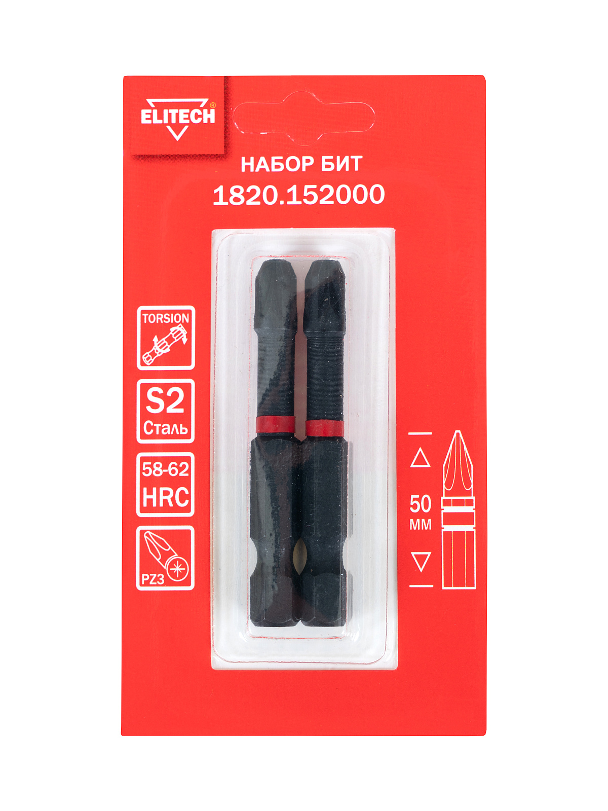 Биты ударные ELITECH 1820.152000. Предназначены для проведения монтажа и демонтажа резьбовых и саморезных соединений. Применяются при работе с ударными шуруповертами.