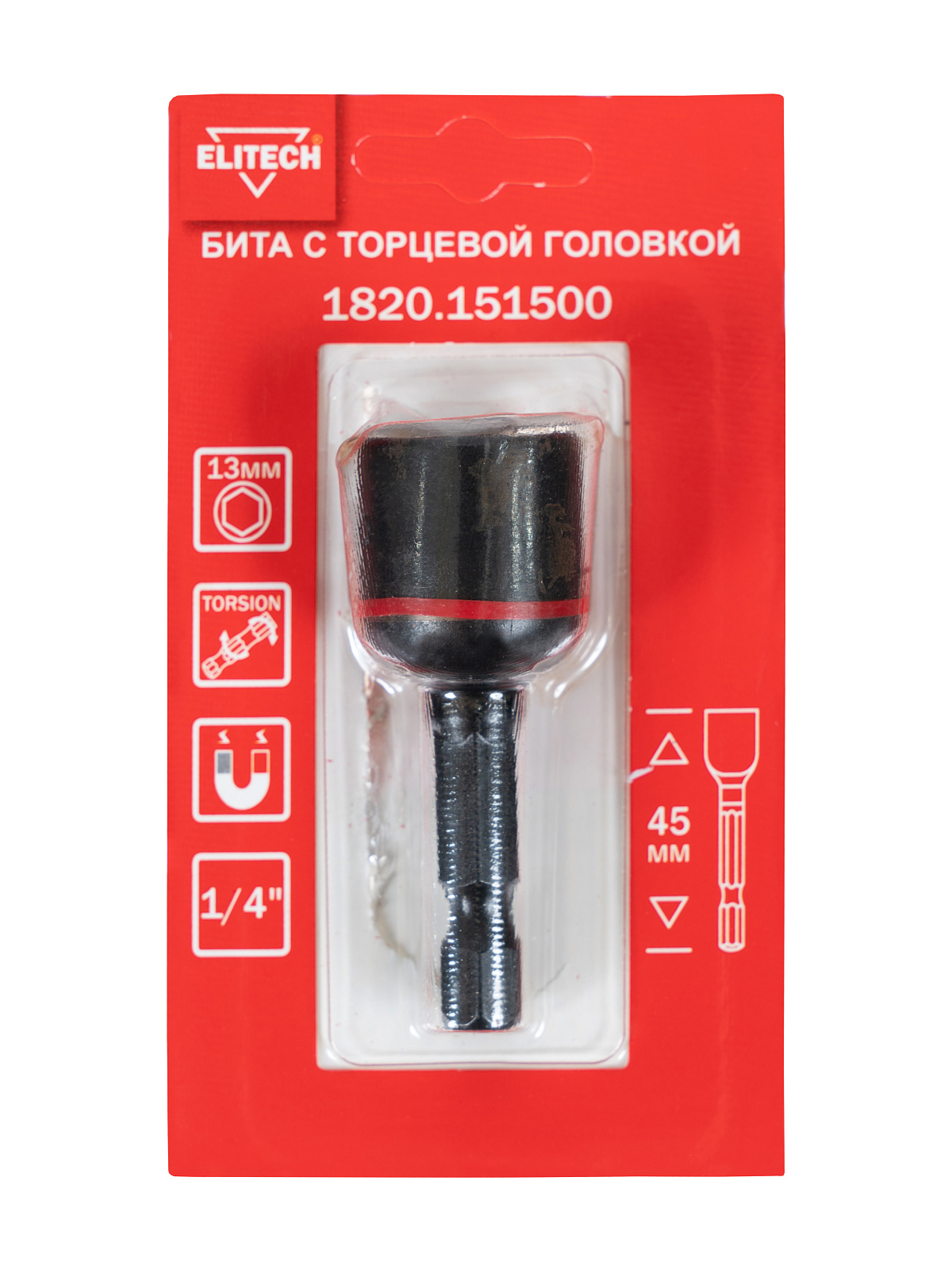 Бита с торцевой головкой, ударная, магнит, 13мм, L45мм, блистер