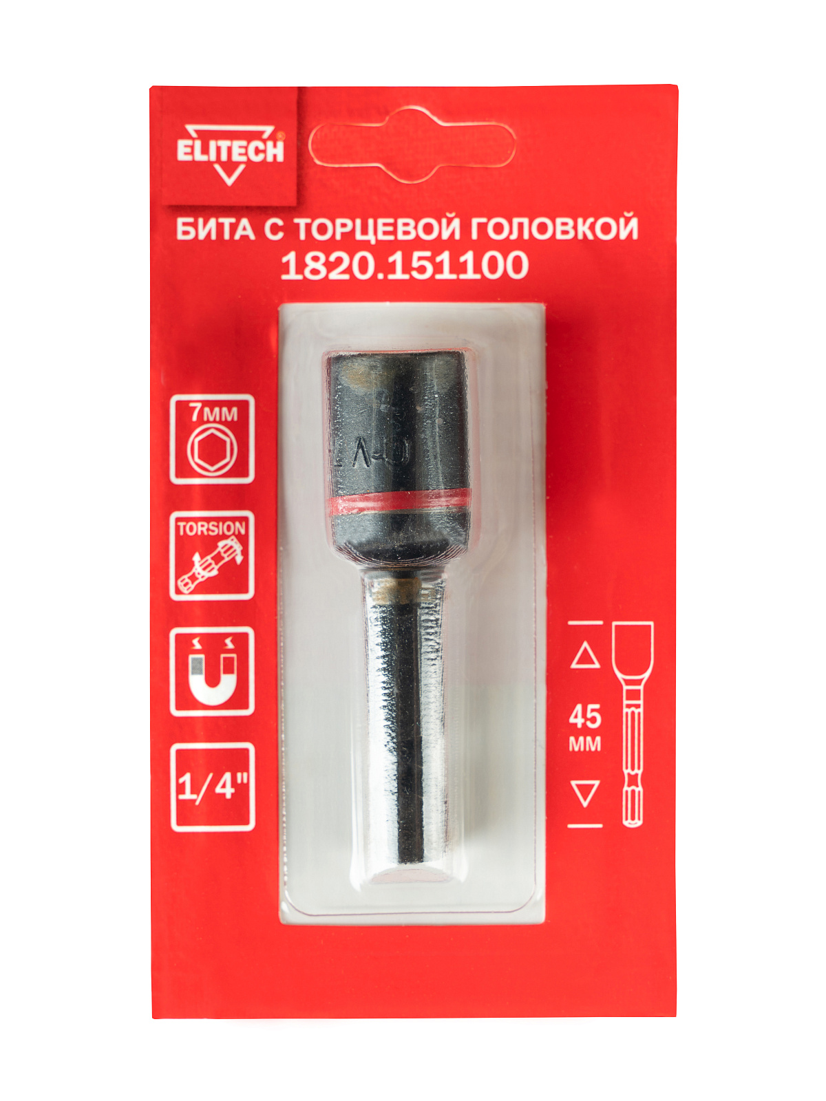 Бита с торцевой головкой, ударная, магнит, 7мм, L45мм, блистер