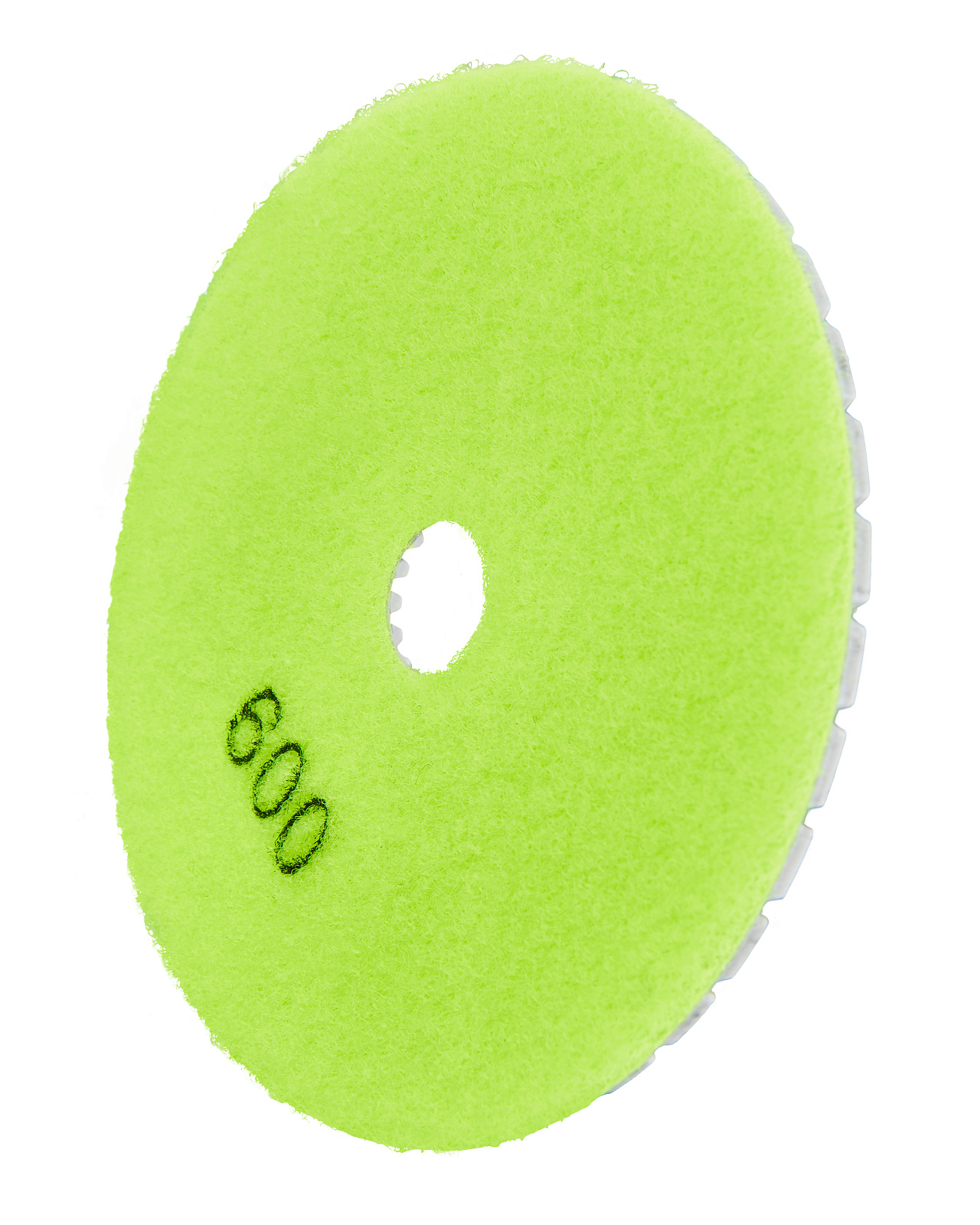 Алмазный гибкий круг диаметром 125 мм и зернистостью Р600 применяется для мокрого шлифования гранита, керамогранита и мрамора.