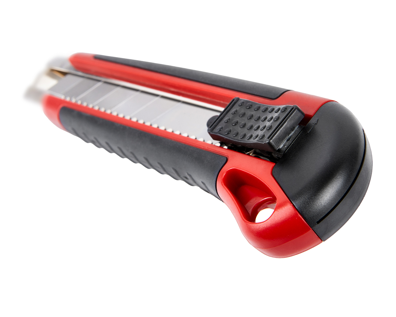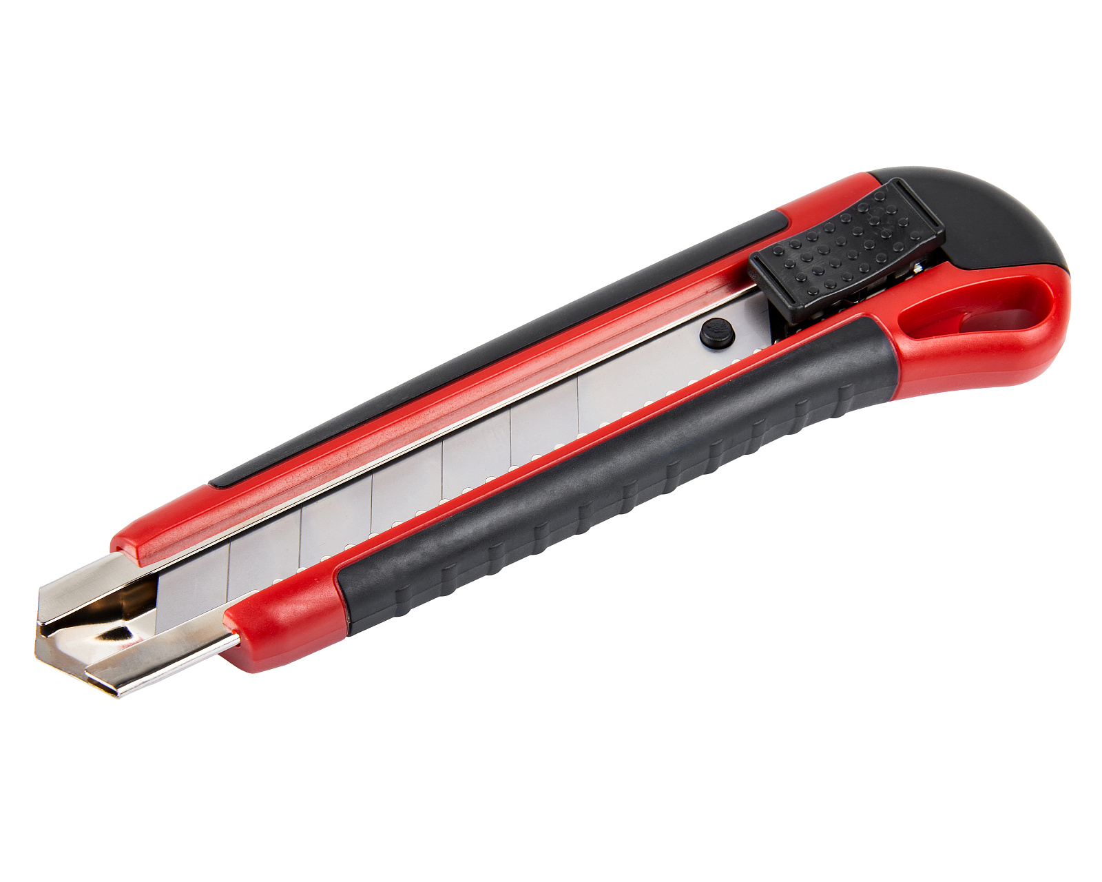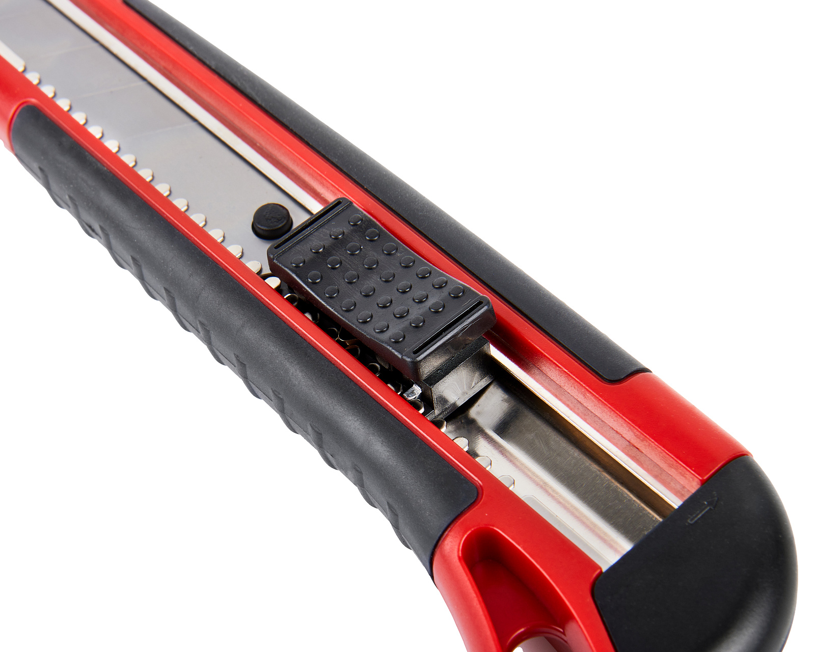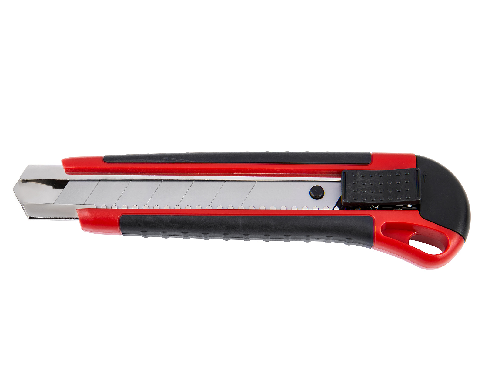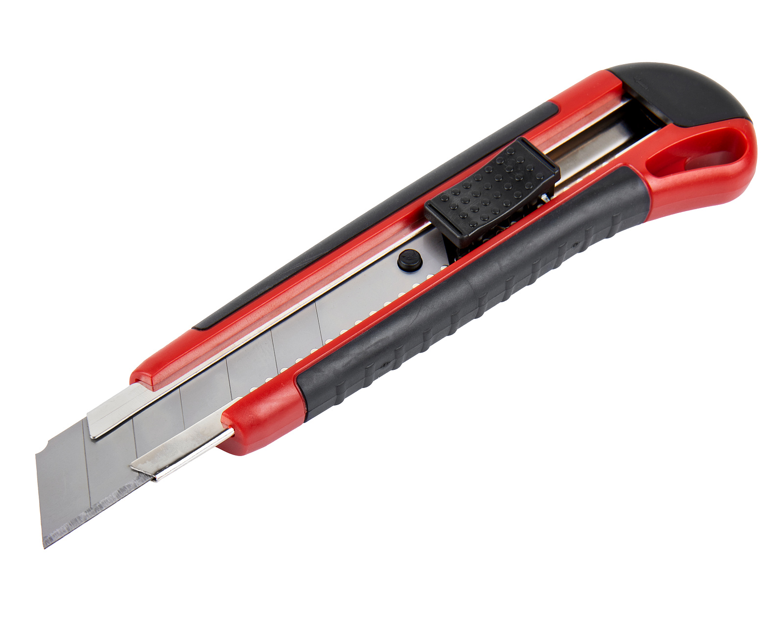 Строительный нож с шириной лезвия 25 мм, автофиксатором и эргономичной обрезиненной рукояткой из ABS-пластика используется для резки различных по твердости материалов. Колпачок на ручке имеет прорезь для отламывания сегментов лезвия.