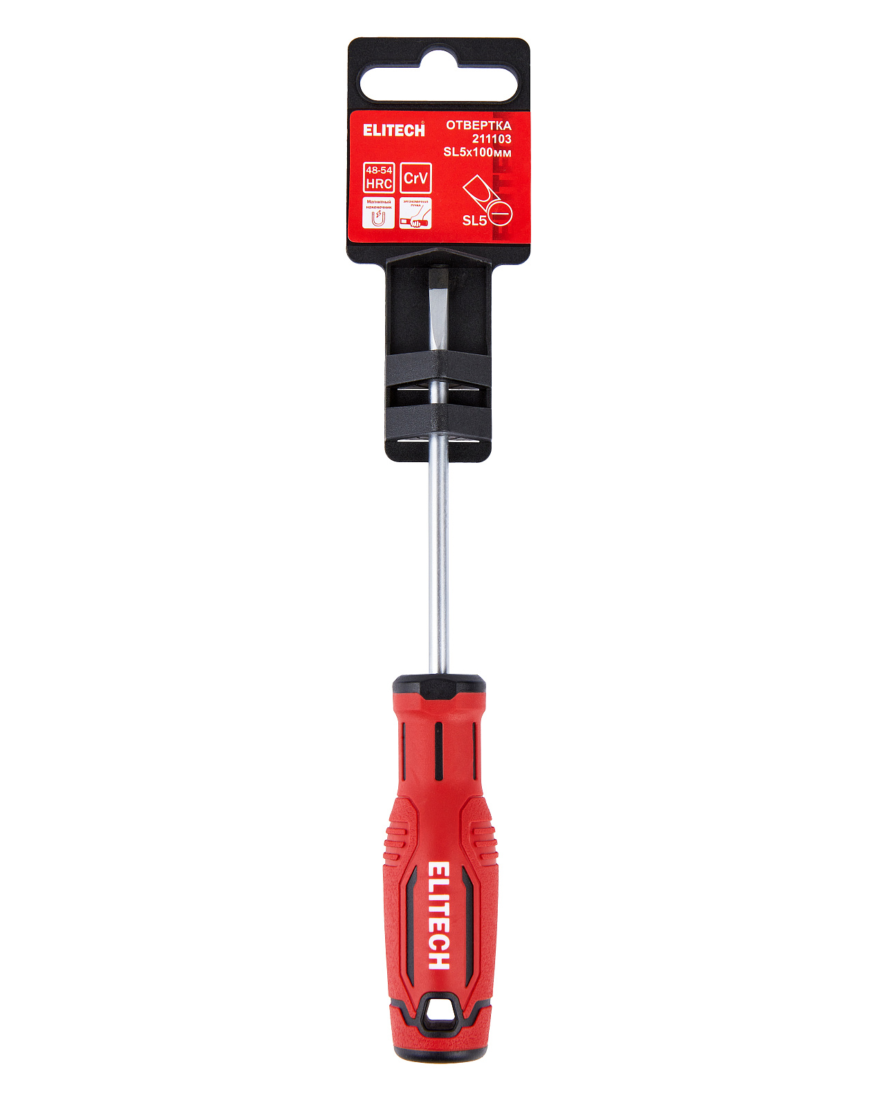 Отвертка SL5 х 100 мм из хромованадиевой стали с магнитным наконечником и эргономичной рукояткой.