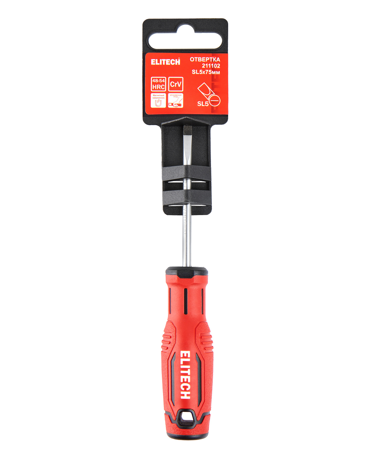 Отвертка SL5 х 75 мм из хромованадиевой стали с магнитным наконечником и эргономичной рукояткой.