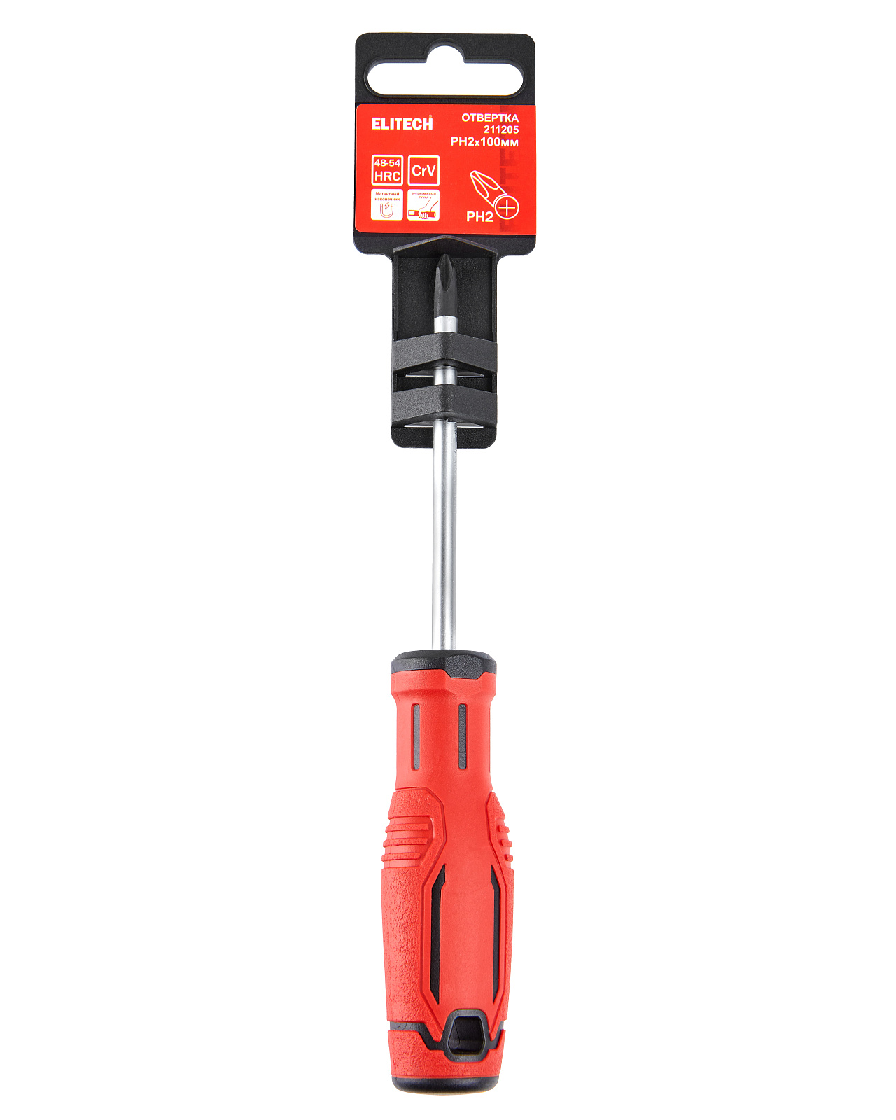 Отвертка PH2х100мм из хромованадиевой стали с магнитным наконечником и эргономичной рукояткой.