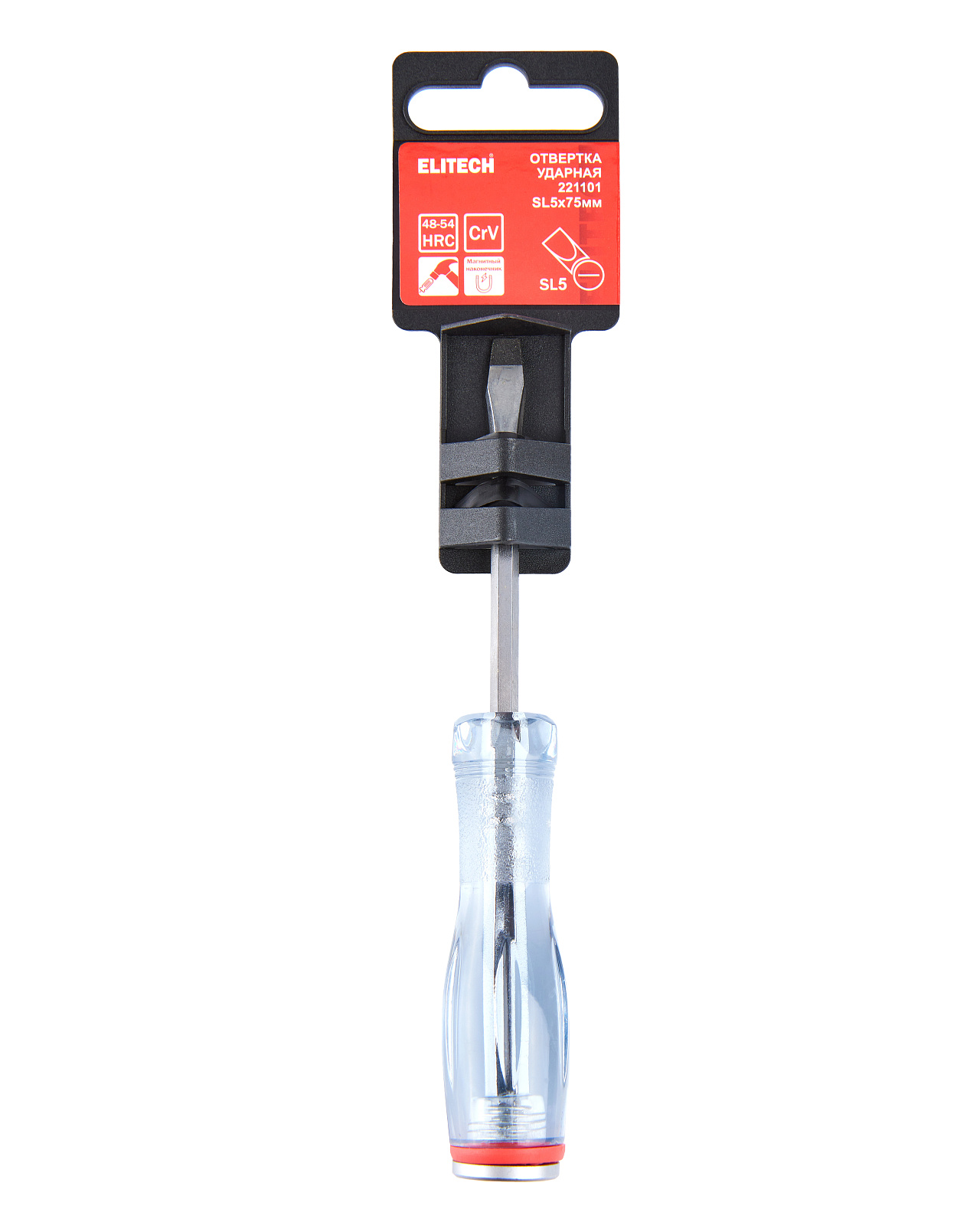 Отвертка ударная SL5,0х75мм из хромованадиевой стали с магнитным наконечником.