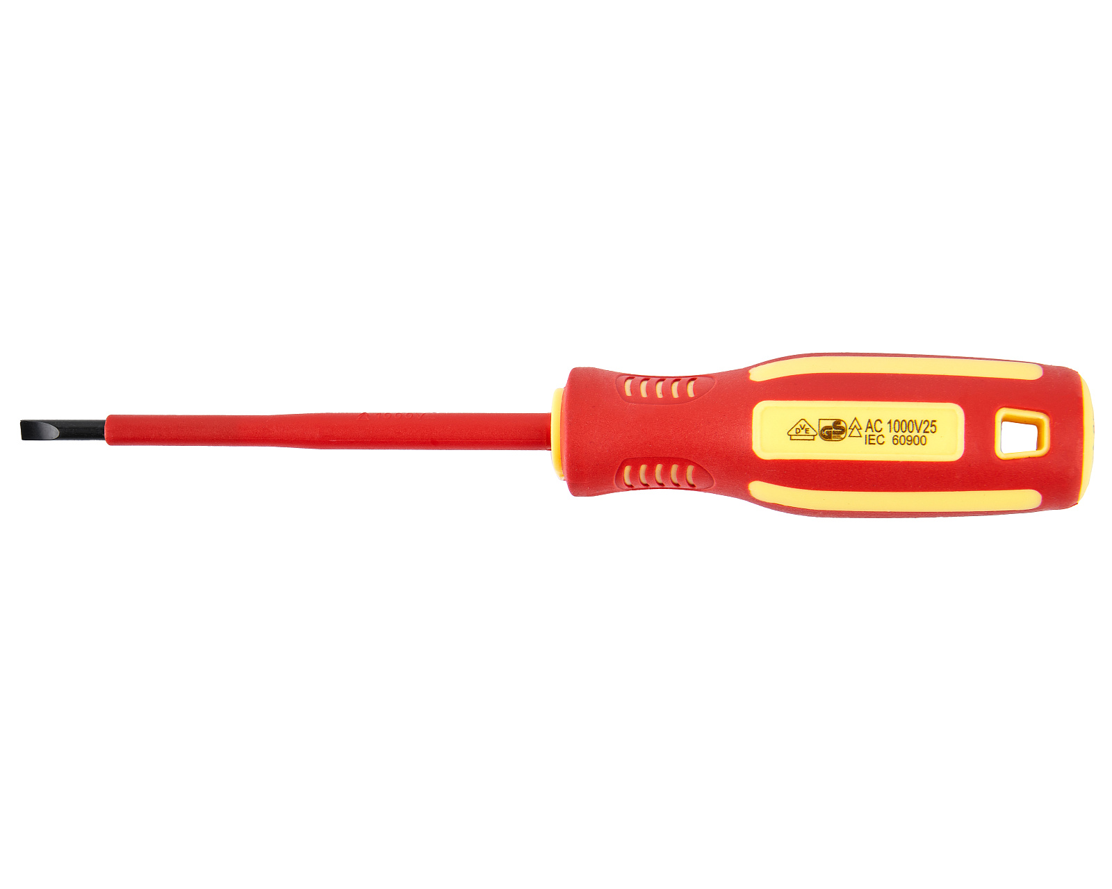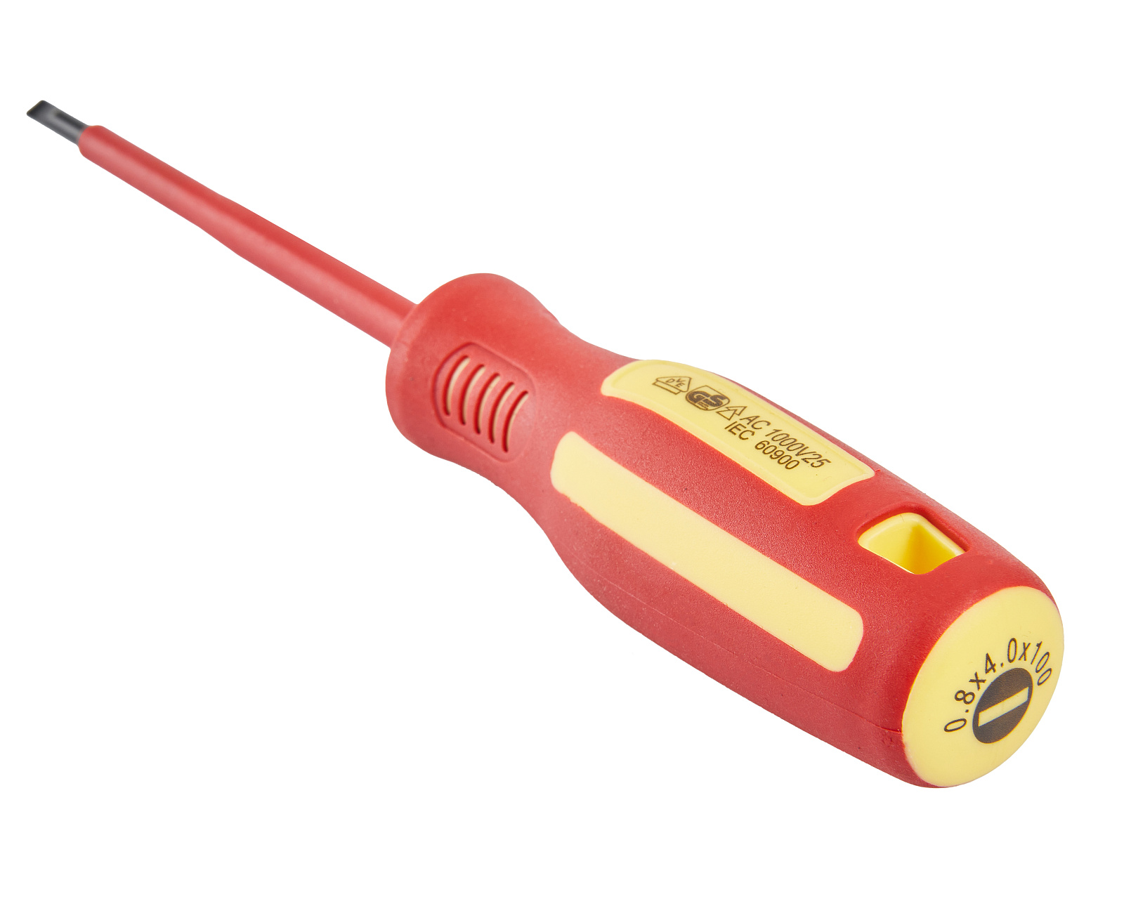 Отвертка диэлектрическая SL4,0x100мм из стали S2 с магнитным наконечником, применяется для работы с крепежом под напряжением до 1000 В.
