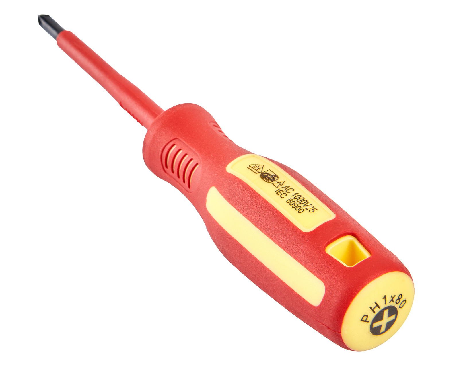 Отвертка диэлектрическая PH1x80мм из стали S2 с магнитным наконечником, применяется для работы с крепежом под напряжением до 1000 В.