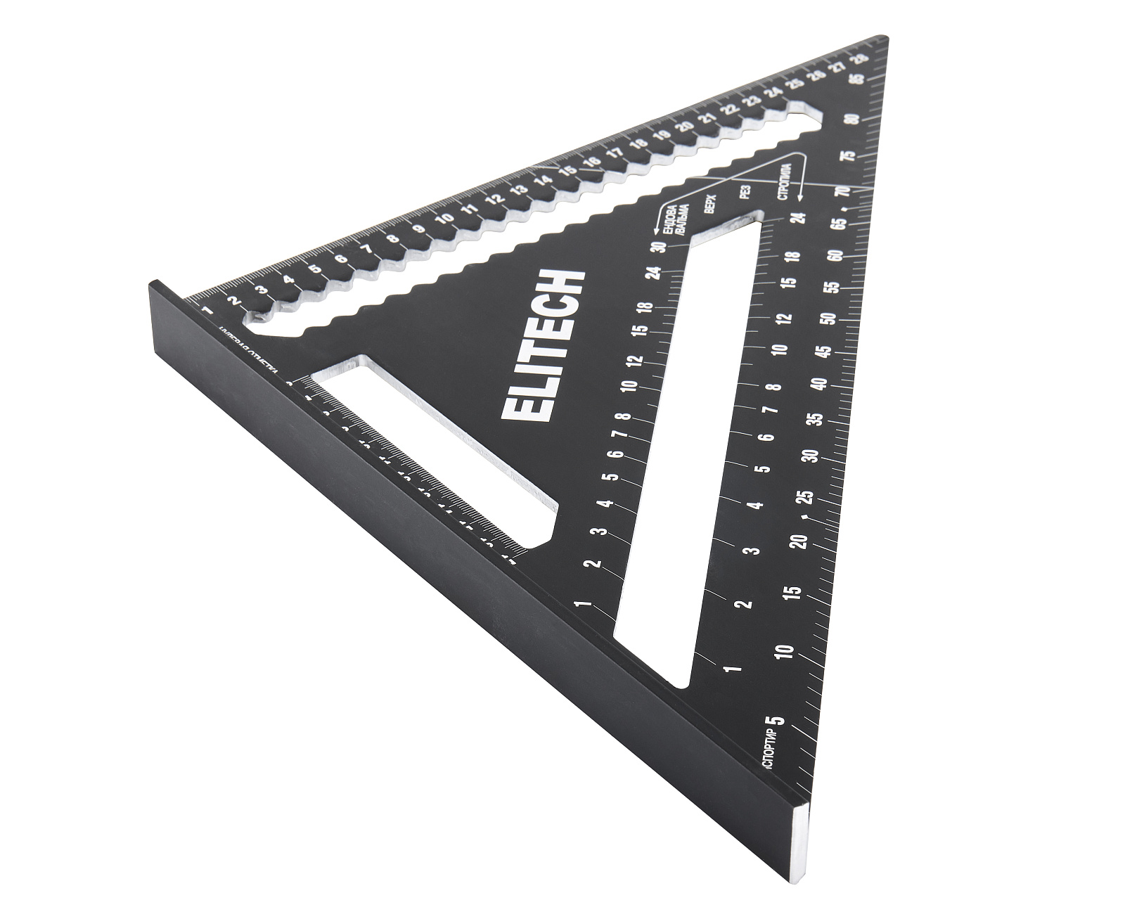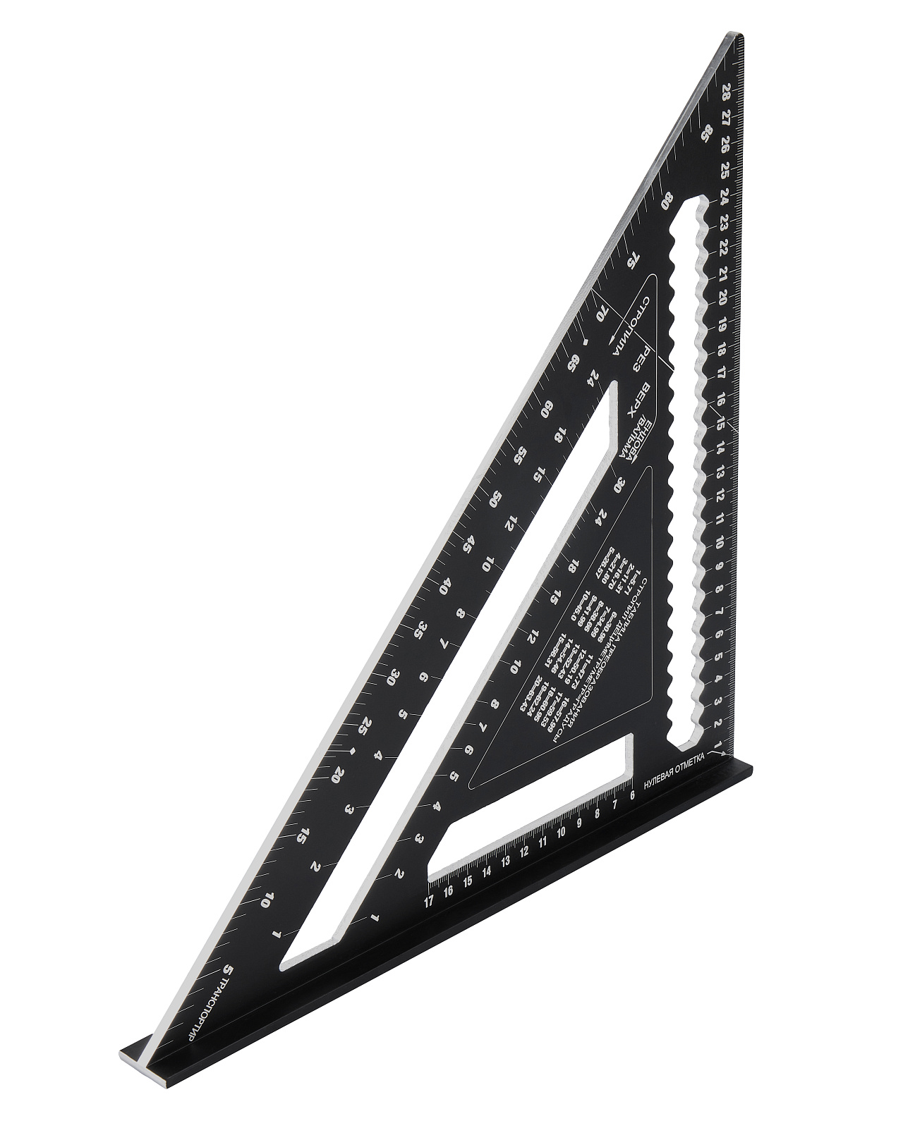 Кровельный угольник длиной 300 мм Основные применения: Проверка угла 45° и 90° Разметка и перенос угла от 0 до 90° Разметка параллельных линий Разметка и перенос углов стропильной системы В качестве упора при торцевании электроинструментом Мощный алюминиевый фрезерованный корпус толщиной 3,5 мм Контрастная высокоточная лазерная гравировка шкалы Анодированное покрытие Угловая шкала-транспортир Кровельная разметка Шкала для поперечной разметки Шкала для продольной разметки Гребенка для параллельной разметки