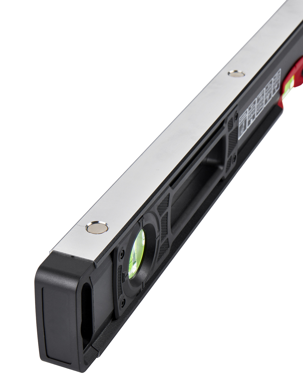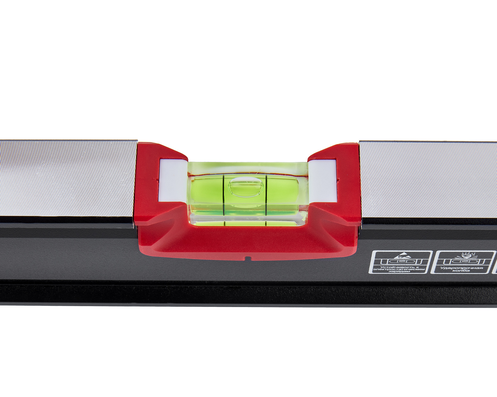 Уровень с пузырьковыми колбами, длиной 80 см, 3 пузырьковые колбы 90/180/90 градусов, ударопрочные и устойчивые к воздействию ультрафиолета и электростатическим разрядам Точность 0,5 мм/м Фрезерованные рабочие поверхности для уменьшения погрешности измерений Мощные неодимовые магниты Зеркальный глазок Массивный и прочный алюминиевый корпус с толщиной стенок 1,5 мм Порошковое покрытие корпуса