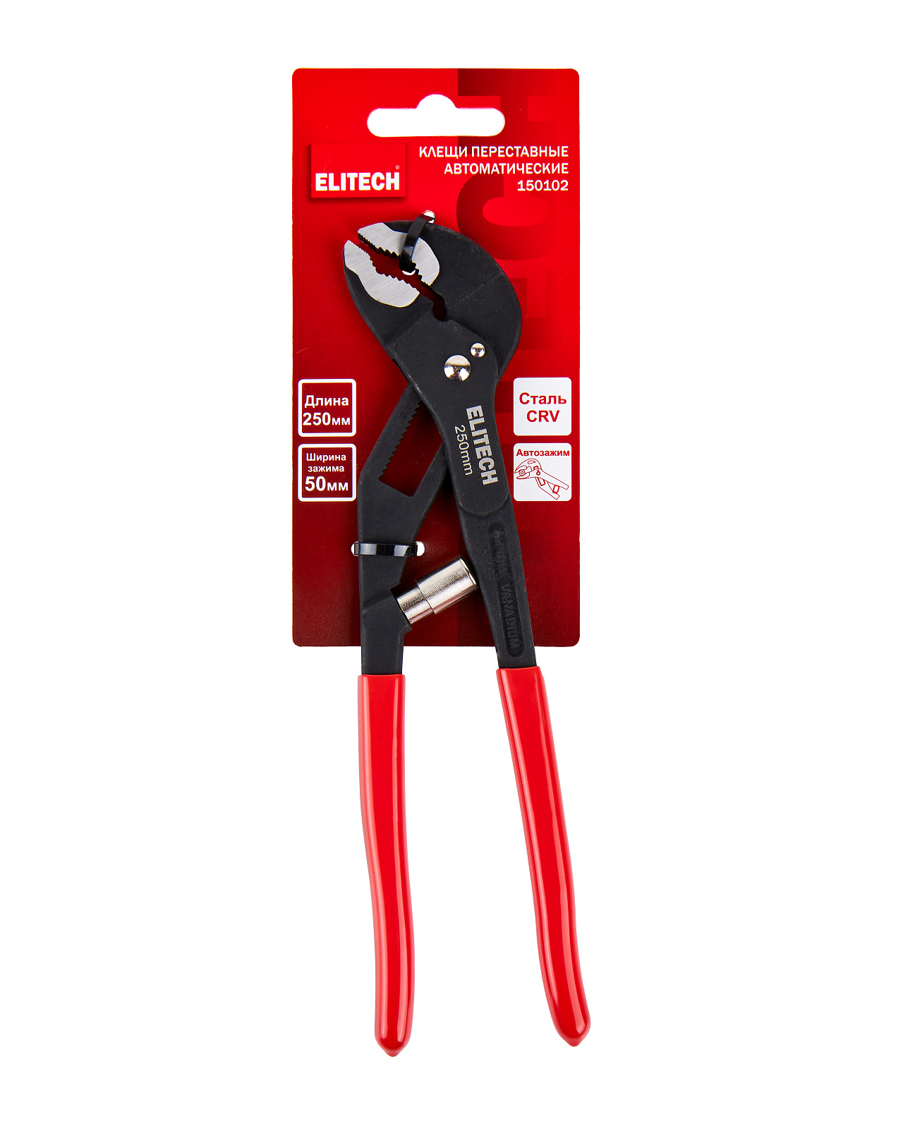 ELITECH Клещи переставные ELITECH 150102. Применяются в ремонтных или демонтажных работах. Губки имеют переставной механизм - для регулировки инструмента по размеру детали.