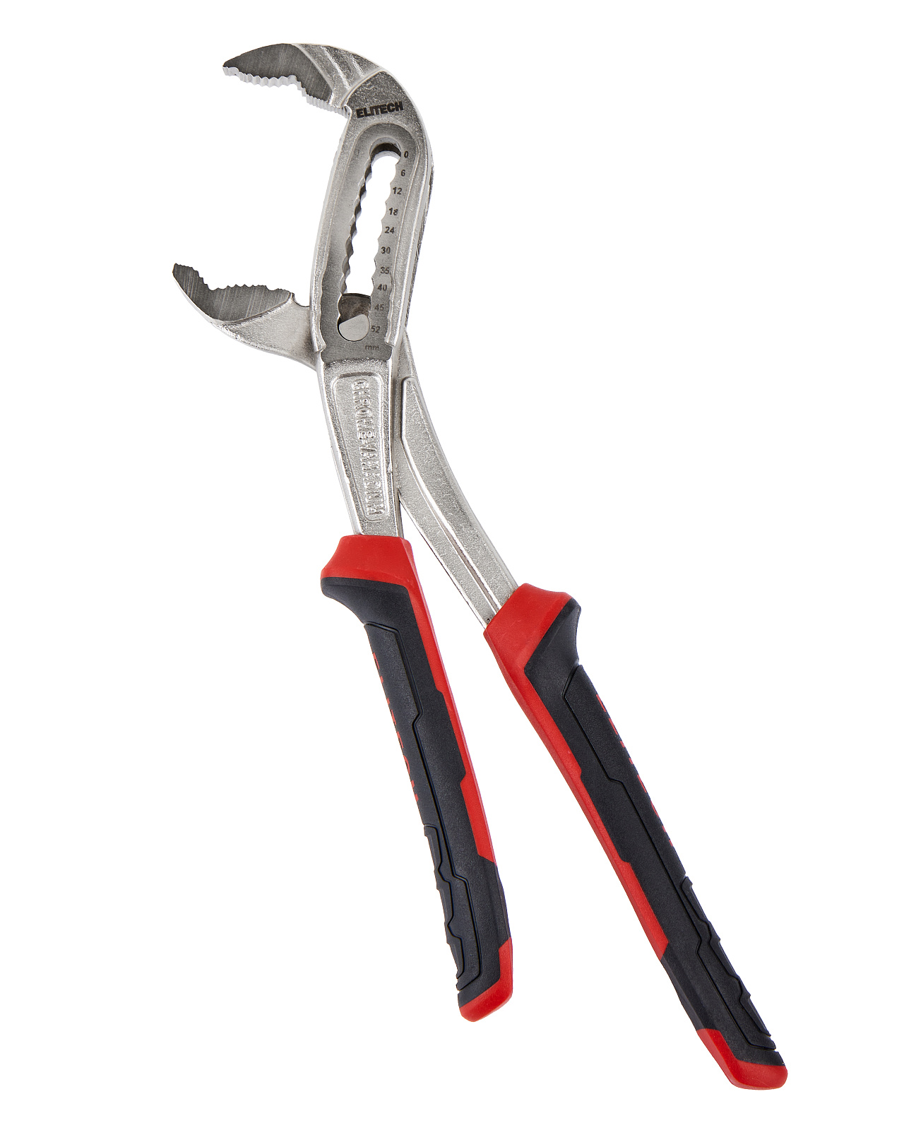 Сантехнические переставные клещи длиной 250 мм из кованой хромованадиевой стали с максимальной шириной зажима 52 мм и со шкалой на корпусе для удобства выбора ширины зажима.