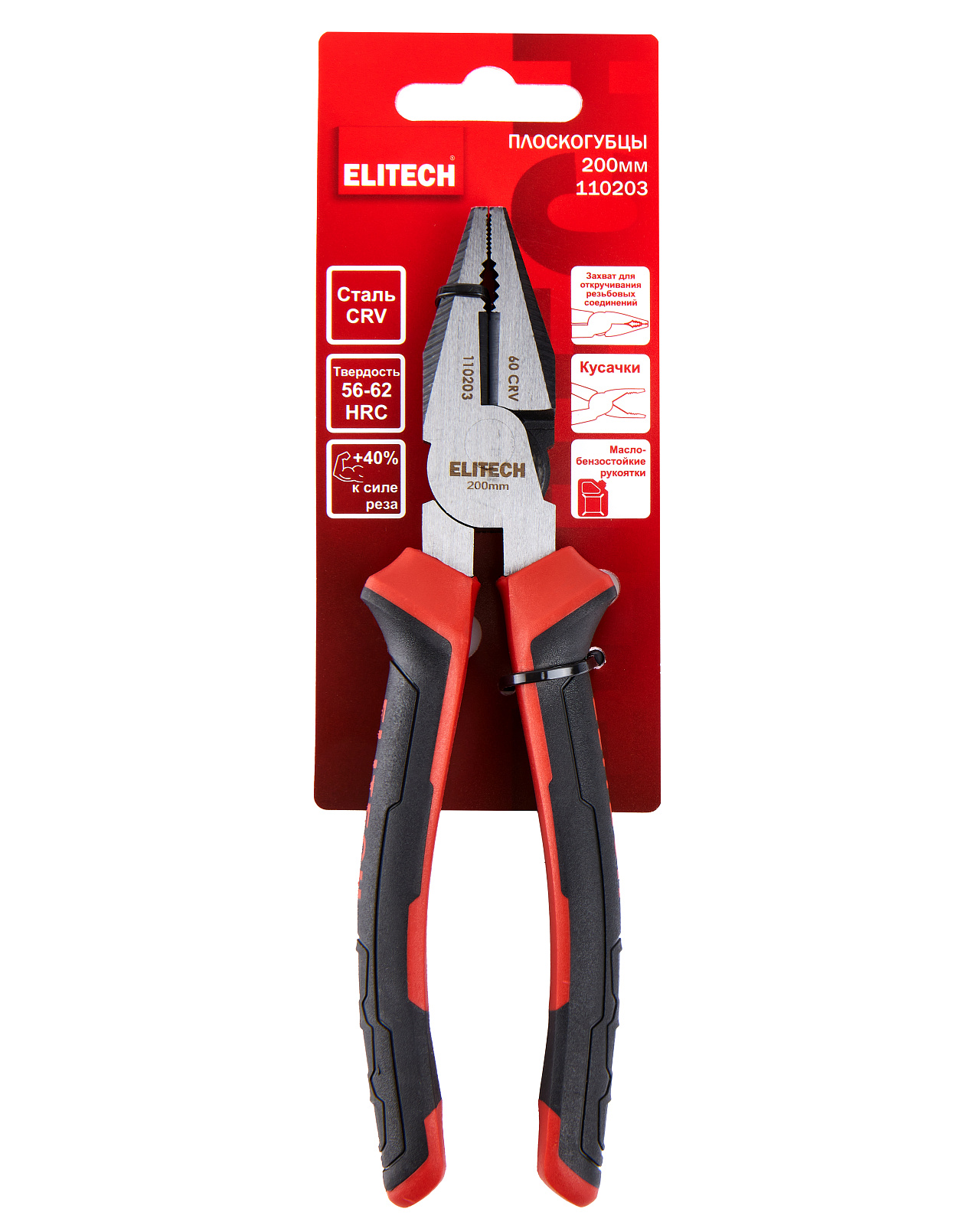 ELITECH Плоскогубцы ELITECH 110203. Предназначены для широкого спектра электромонтажных и слесарных работ.
