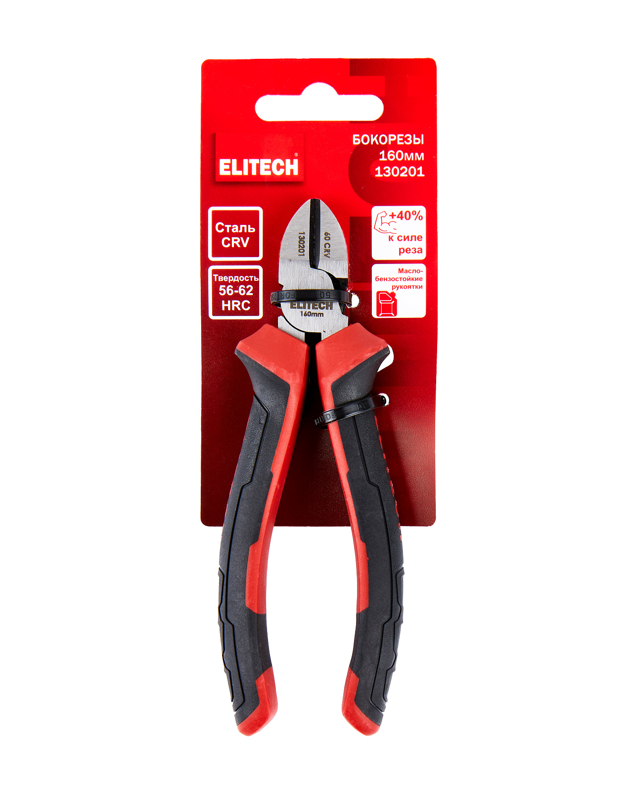 ELITECH Бокорезы ELITECH 130201. Предназначены для перекусывания стальной и медной проволоки, проводов или лески небольшого диаметра. Инструмент оснащен диагональными губками, изготовленными из хромованадиевой стали, отличающейся прочностью и долговечностью. Удобные рукоятки надежно удерживаются в руке, обеспечивая комфортную работу.