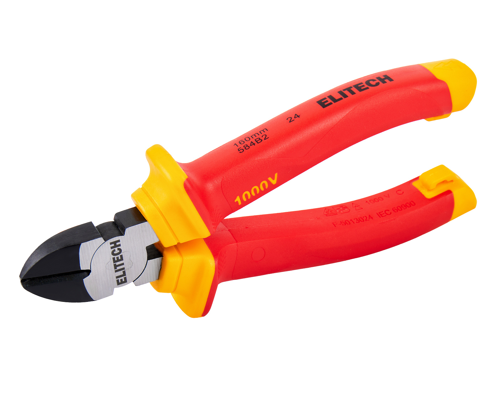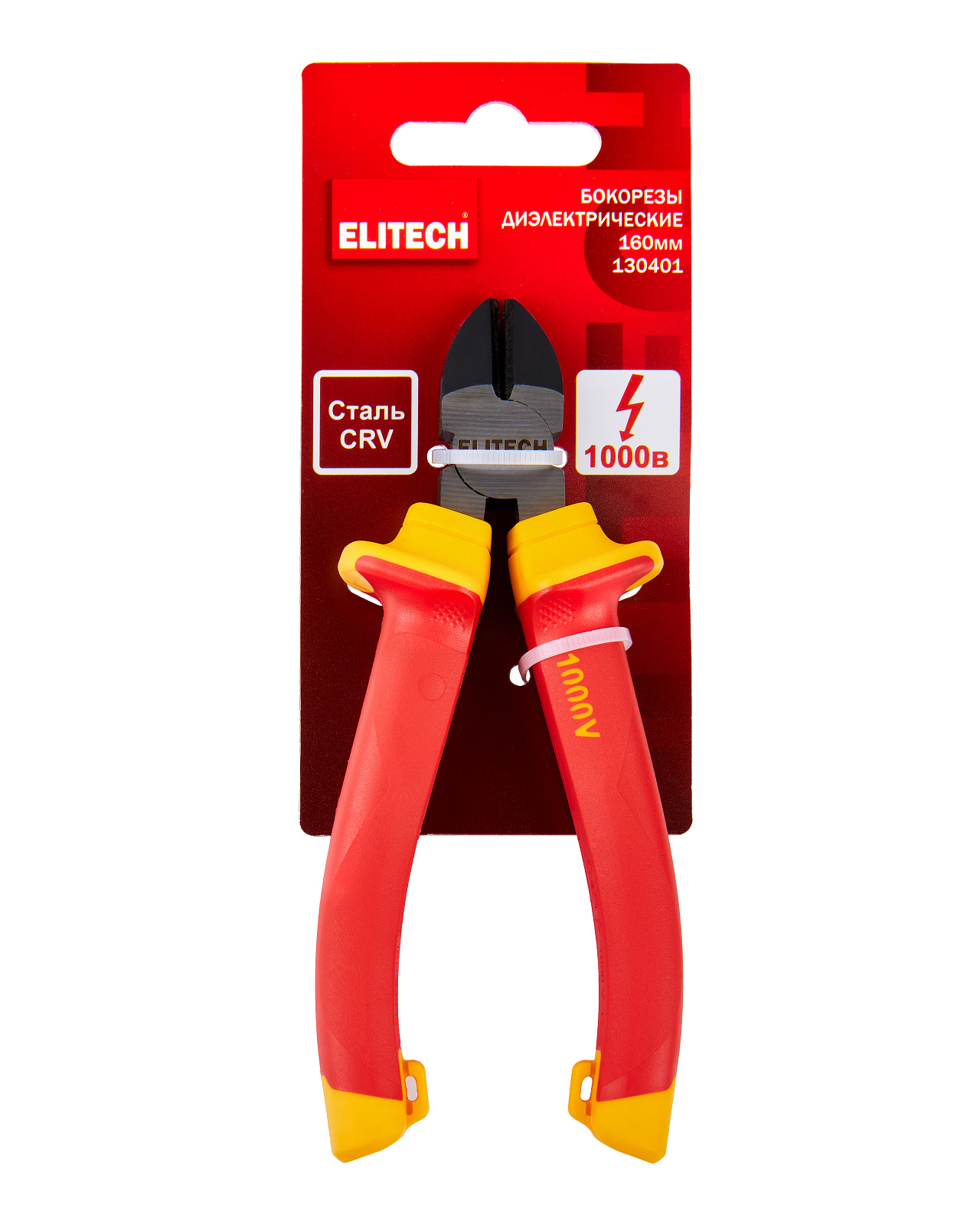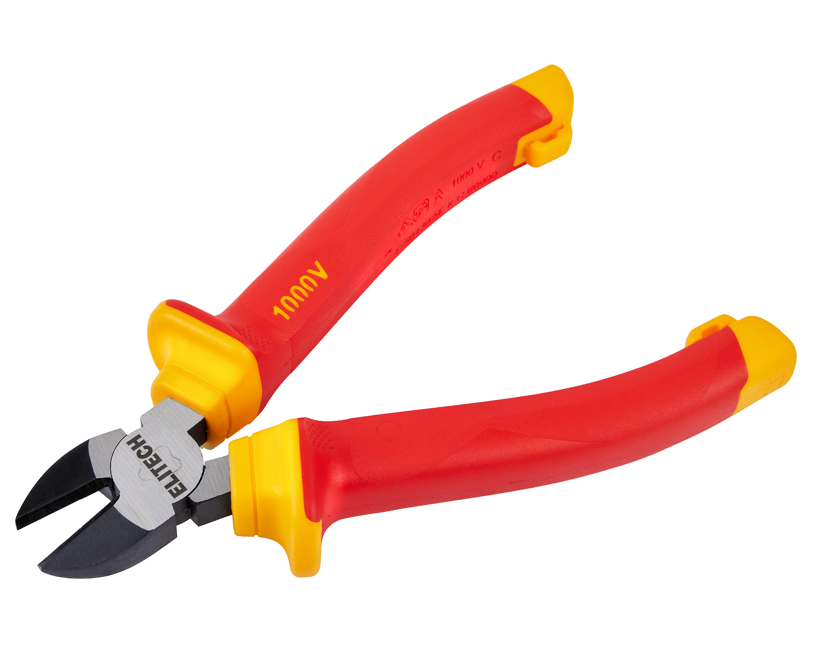 ELITECH Бокорезы диэлектрические ELITECH 130401. Предназначены для перекусывания стальной и медной проволоки, проводов или лески небольшого диаметра. Диэлектрические рукоятки с защитными гардами предохраняют руку от соскальзывания и пробоя искры и позволяют выполнять работы с деталями и конструкциями под напряжением до 1000В.
