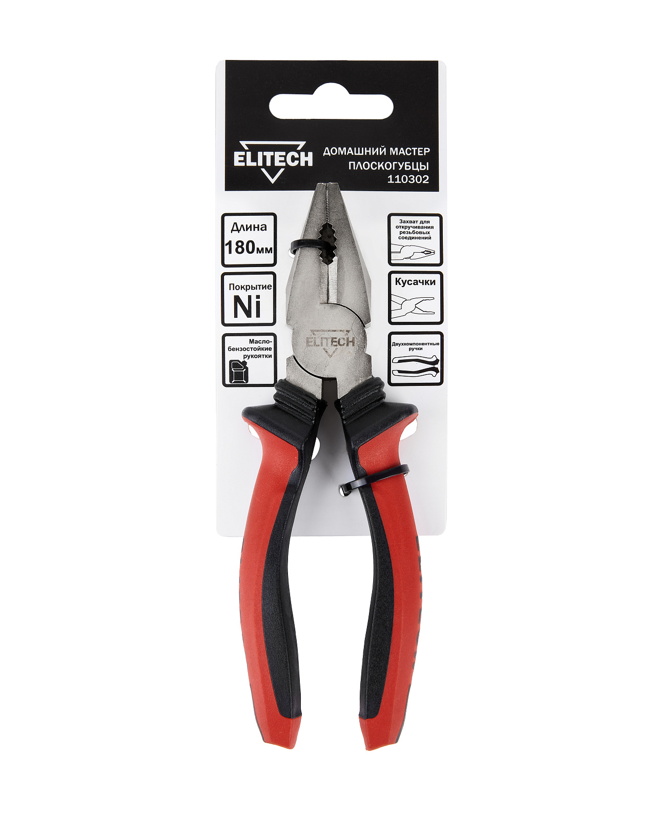 ELITECH Домашний мастер Плоскогубцы ELITECH 110302. Предназначены для широкого спектра электромонтажных и слесарных работ.