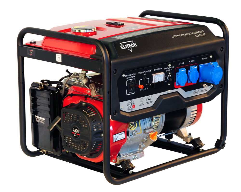 Бензиновая электростанция (генератор) ELITECH СГБ 6500 Р. Предназначена для работы в качестве автономного источника электроэнергии переменного однофазного тока напряжением 220В, частотой 50Гц.