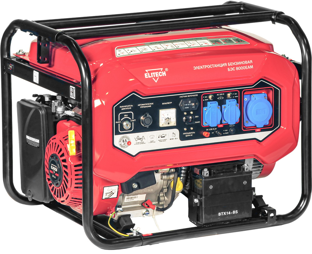 Электростанция БЭС 8000 ЕАМ с четырехтактным бензиновым двигателем. Однофазная. Номинальная мощность 6,0кВт. Две розетки 220В/16А. Одна розетка 220В/32А. Электрический стартер.Возможность подключения блока автоматического запуска АВР 10.
