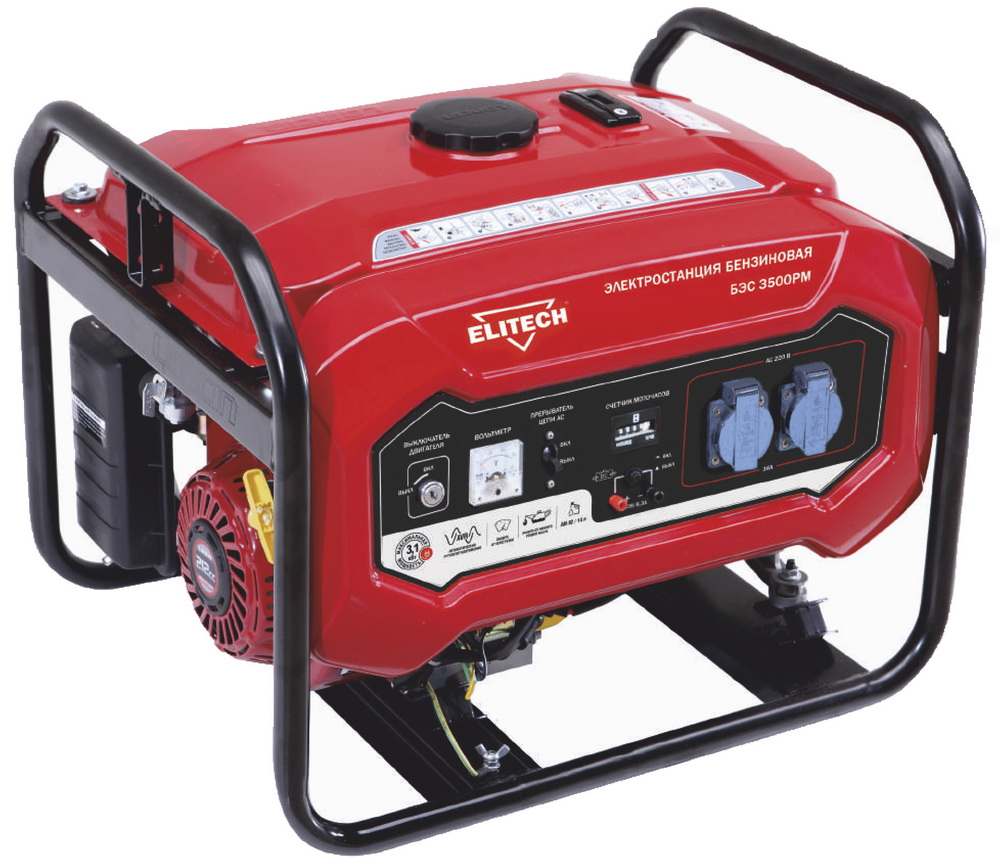 Бензогенератор ELITECH БЭС 3500 РМ - резервная электростанция способна обеспечить домашнее бытовое оборудование электроэнергией на время отключения основного питания. Станция способна работать как в интенсивном режиме продолжительное время, так и использоваться при необходимости. Оптимально подходит как для профессионального, так и для бытового применения. Модель укомплектована счетчиком моточасов.