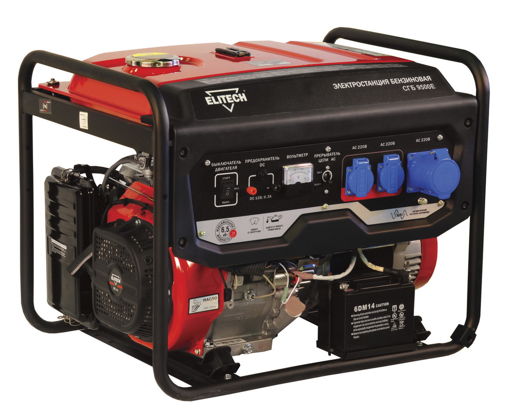Электростанция СГБ 9500 Е с четырехтактным бензиновым двигателем. Однофазная. Номинальная мощность 7 кВт. Две розетки 220В/16А. Одна розетка 220В/32А. Электростартер.