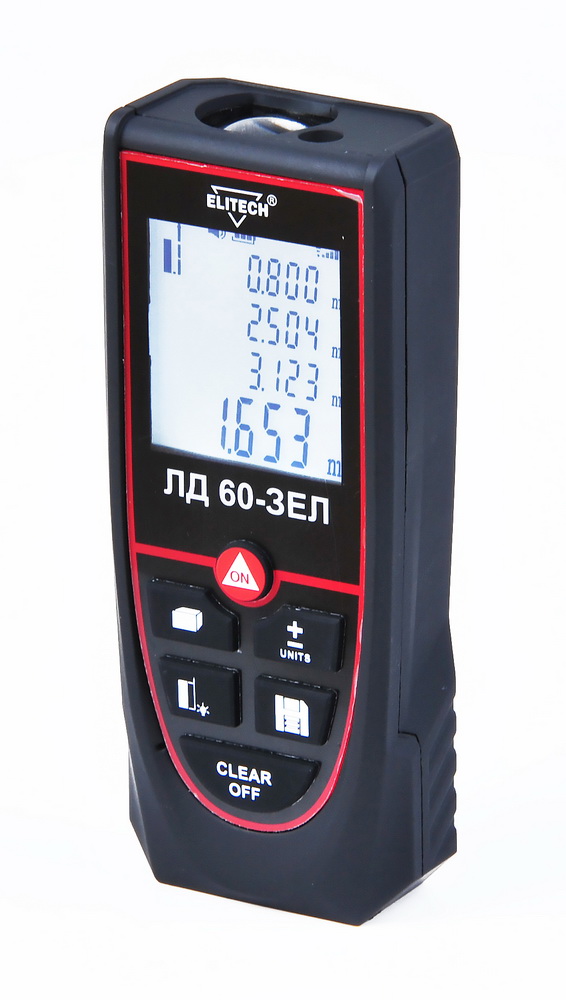 ELITECH ЛД 60-ЗЕЛ - Лазерный дальномер Область применения:Лазерный дальномер ELITECH ЛД 60-ЗЕЛ предназначен для быстрого измерения расстояний до 60 метров. Заменяя традиционное оборудование для измерений, такое как рулетка. Дальномер позволяет получить более точный результат. На сегодняшний день данный прибор широко применяется при производственных, строительных и ремонтных работах. Является незаменимым инструментом для проведения измерений в труднодоступных местах, таких как, колодцы и шахты. Лазерный луч зеленого цвета отлично видно на поверхностях любого цвета.