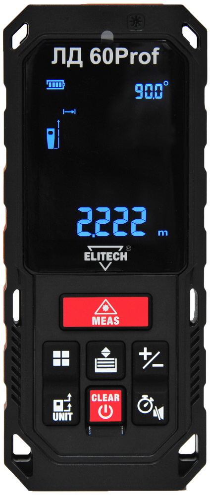 Лазерный дальномер ELITECH ЛД 60 Prof – надежное, рассчитанное на быстрое выполнение измерений в диапазоне 0,05 – 60 м устройство. Оно может быть полезным во множестве областей деятельности, среди которых ремонт, картография и геодезия. Данный прибор есть возможность использовать при температуре от 0 до +40 градусов. Стоит обратить внимание, что предлагаемая техника отличается высокой точностью (±2 мм).