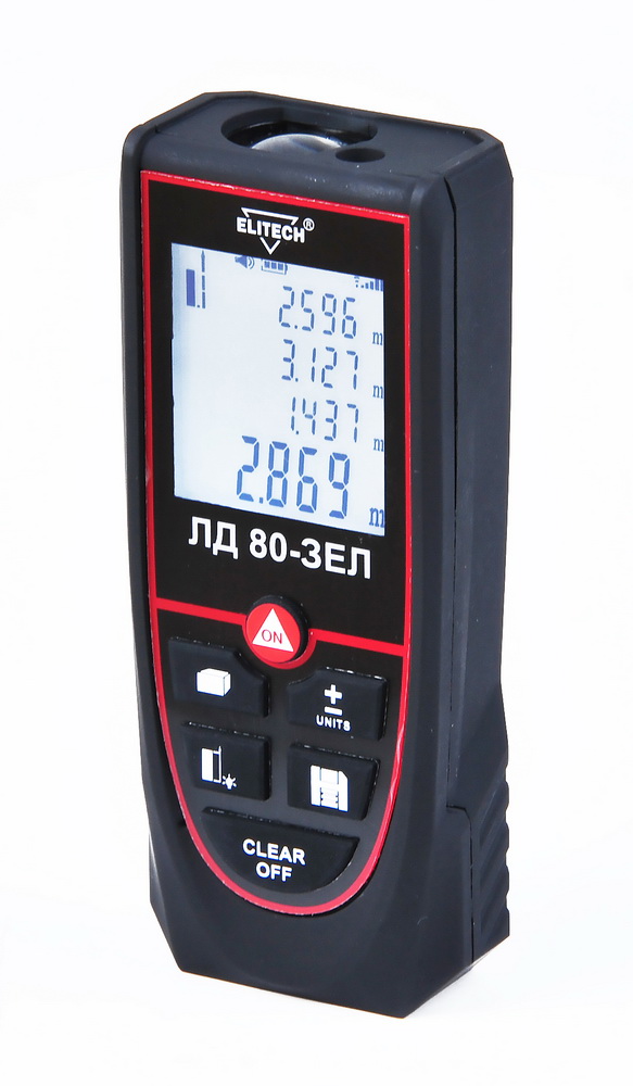 ELITECH ЛД 80-ЗЕЛ - Лазерный дальномер Область применения:Лазерный дальномер ELITECH ЛД 80-ЗЕЛ предназначен для быстрого измерения расстояний до 80 метров. Заменяя традиционное оборудование для измерений, такое как рулетка. Дальномер позволяет получить более точный результат. На сегодняшний день данный прибор широко применяется при производственных, строительных и ремонтных работах. Является незаменимым инструментом для проведения измерений в труднодоступных местах, таких как, колодцы и шахты. Лазерный луч зеленого цвета отлично видно на поверхностях любого цвета.