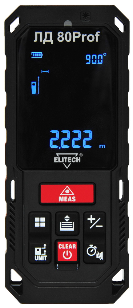 Лазерный дальномер ELITECH ЛД 80 Prof – предназначенный для выполнения измерений в диапазоне от 0,05 до 80 м прибор. Он рассчитан на быстрое получение результатов и позволяет экономить много времени мастерам в разных сферах деятельности. Точность у предлагаемой техники имеет величину ±1,5 мм. Она дает возможность производить 8000 операций на одном комплекте батарей.
